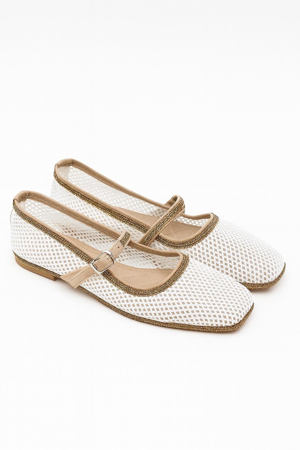 Abil Kristal Taşlı Babet Beyaz - KADIN AYAKKABI