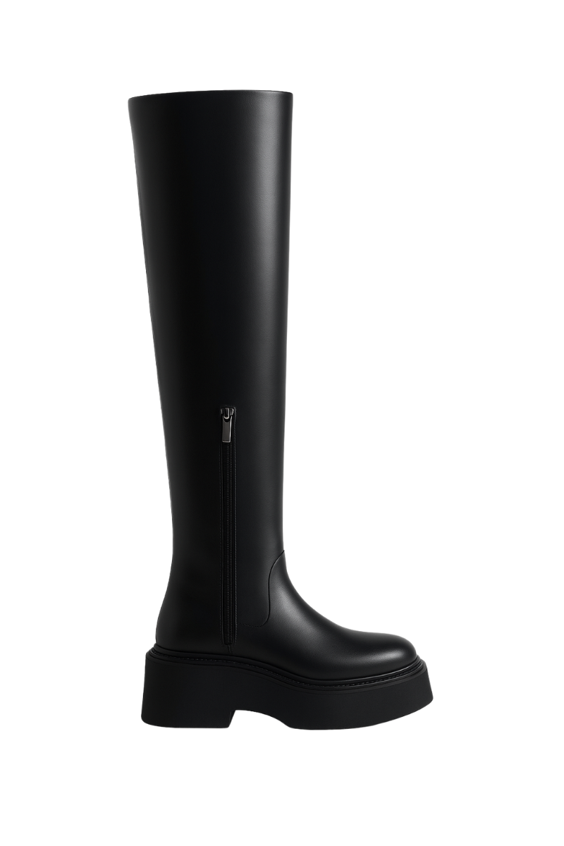 Astra Diz Üstü Kalın Tabanlı Çizme Siyah