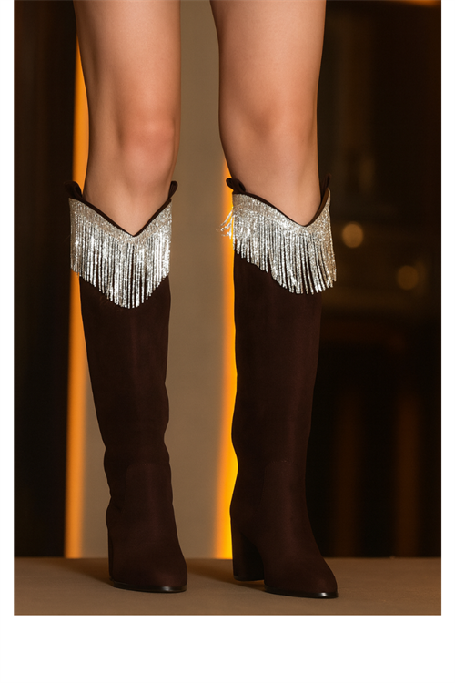 Cara Topuklu Çizme Süet Siyah