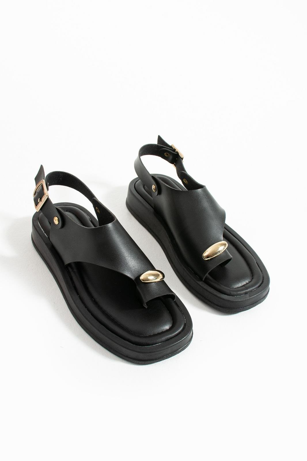 Cream Yumuşak Tabanlı Sandalet Siyah - KADIN AYAKKABI