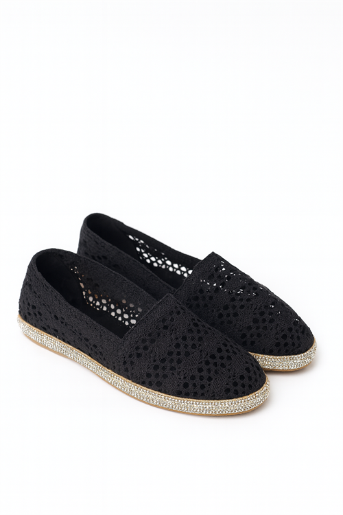 Dantex Kristal Taşlı Özel Tasarım Dantel Babet Siyah