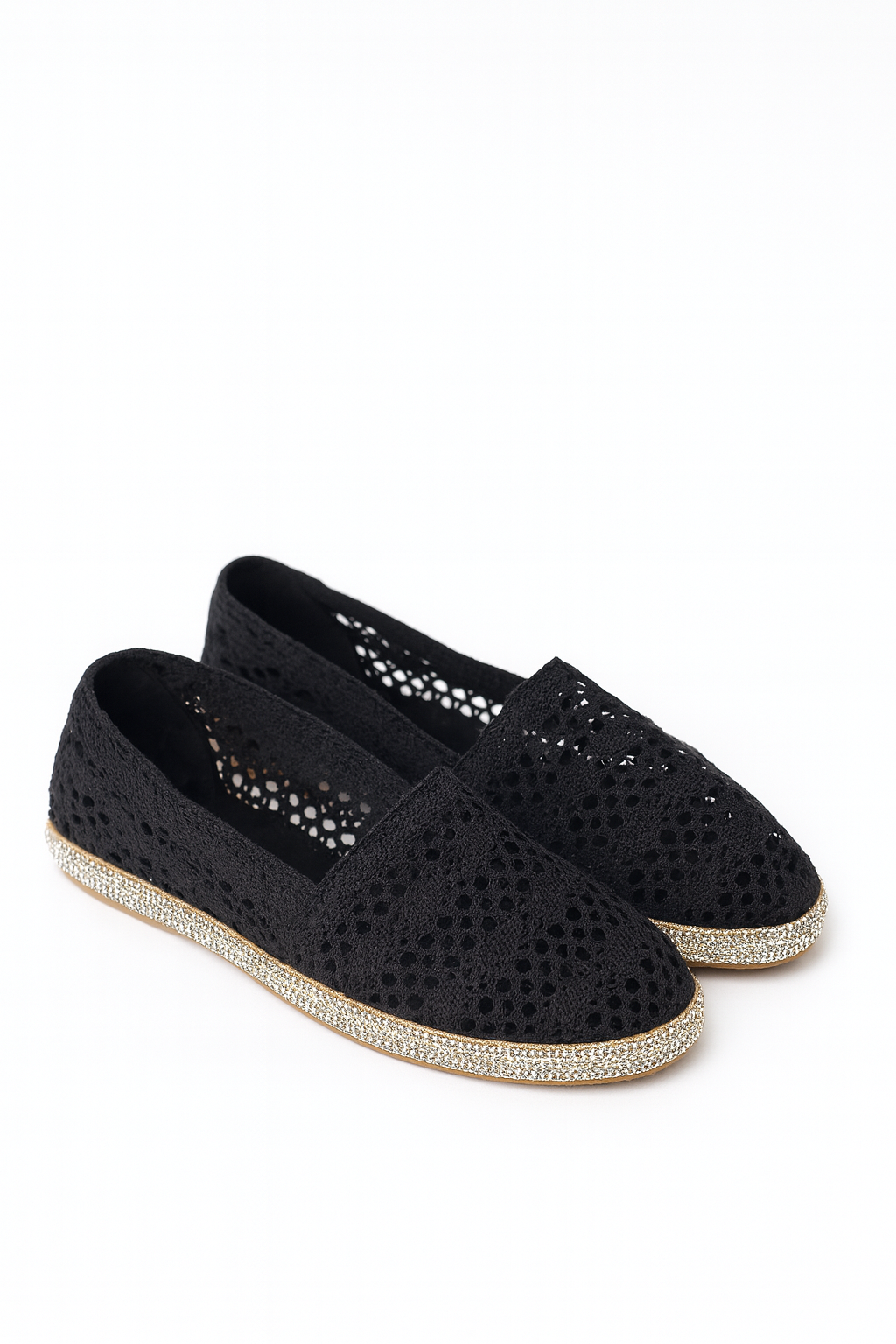 Dantex Kristal Taşlı Özel Tasarım Dantel Babet Siyah - KADIN AYAKKABI