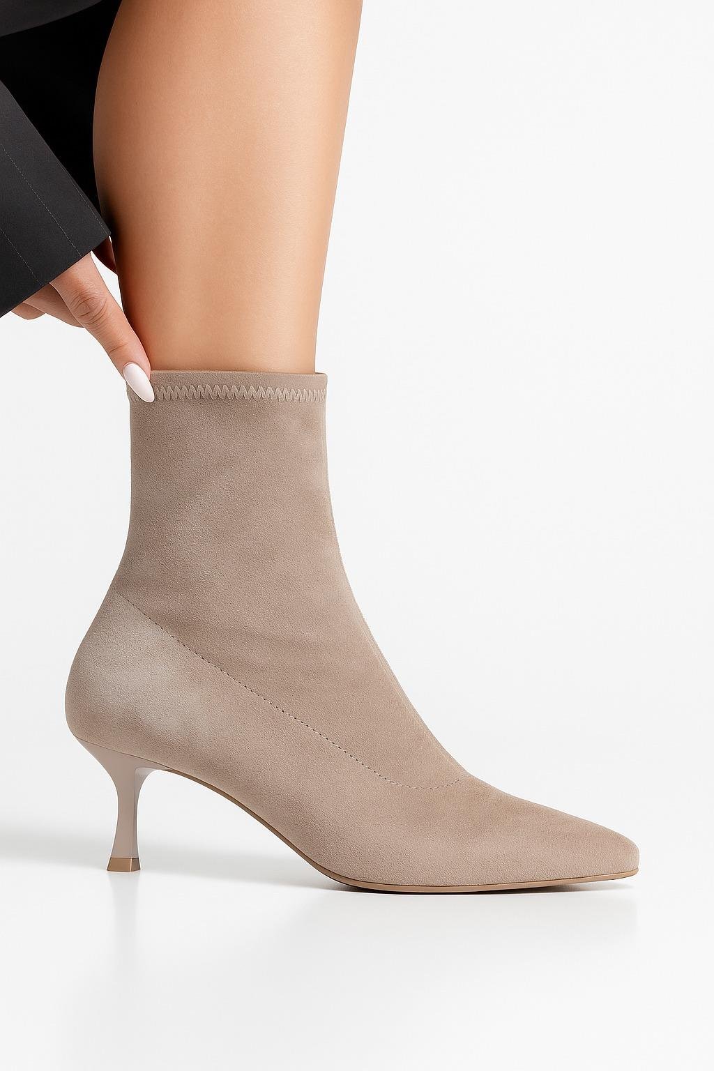 Deffi Süet İnce Topuk Bot Bej