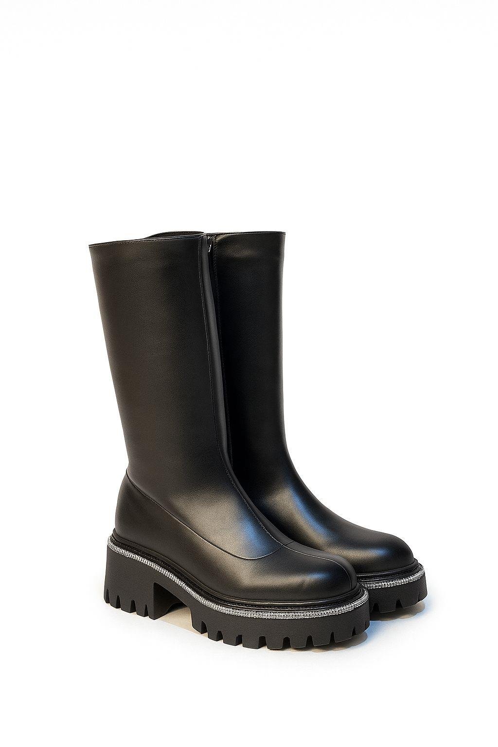 Elani Kristal Taşlı Çizme Siyah - Düz Çizme
