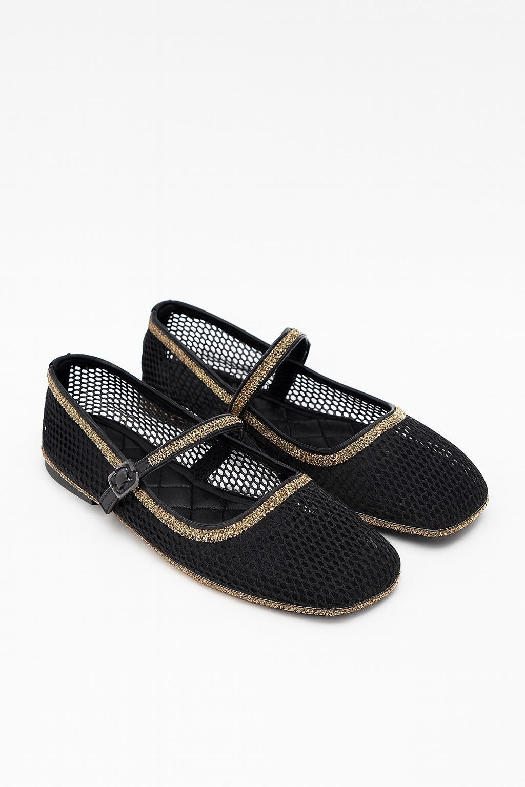 Abil Kristal Taşlı Babet Siyah - Düz Babet