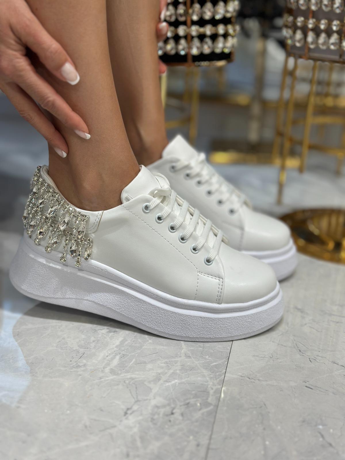 Alaram Kristal Taşlı Özel Spor Ayakkabı Beyaz - WOMAN SHOES
