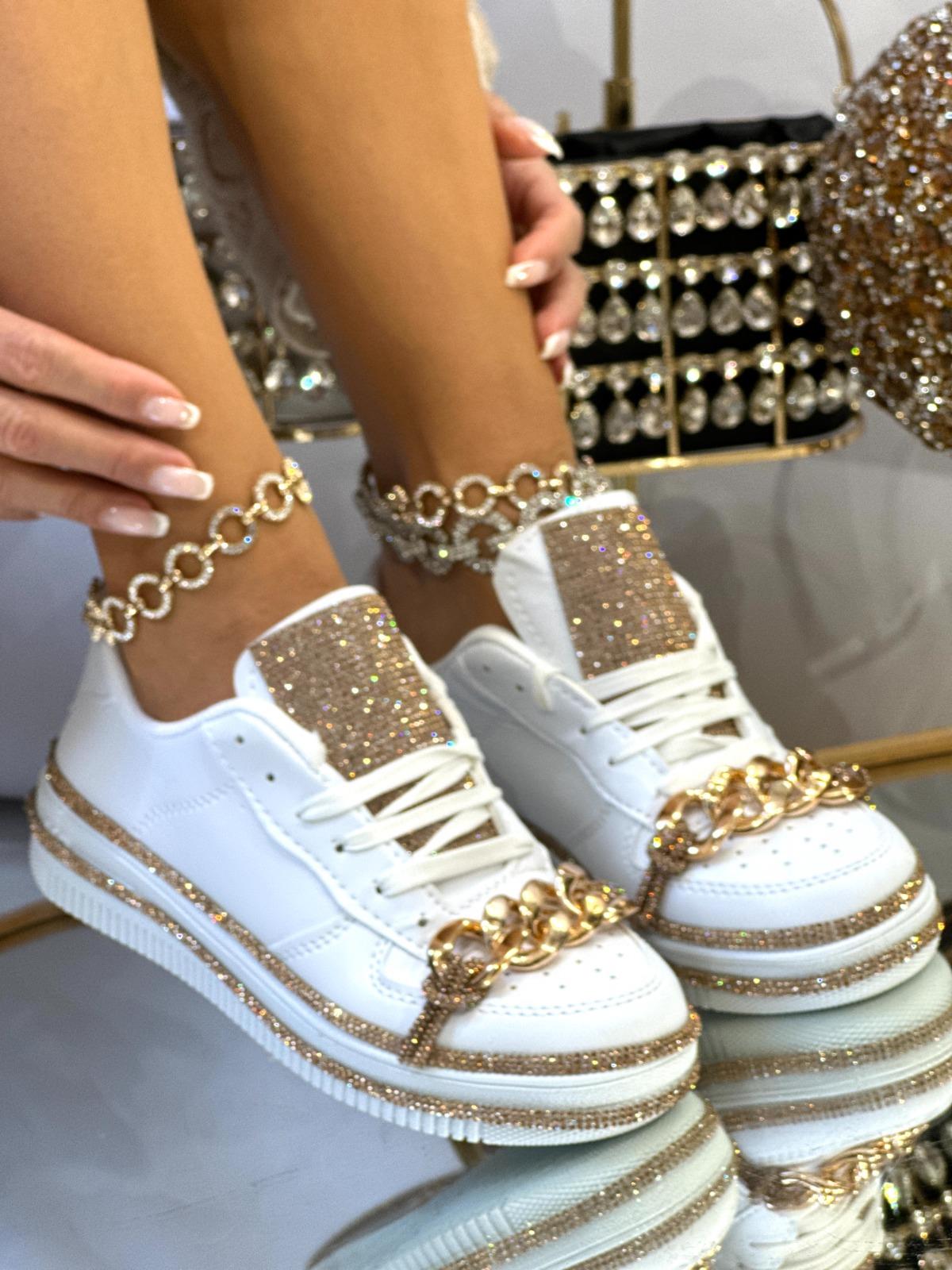 Diva Kristal Taşlı Özel Tasarım Spor Ayakkabı Beyaz - WOMAN SHOES