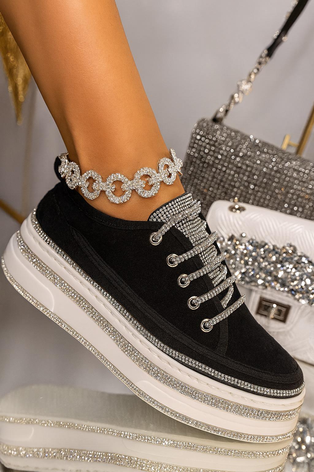 Find Kristal Taşlı Keten Spor Ayakkabı Siyah - WOMAN SHOES