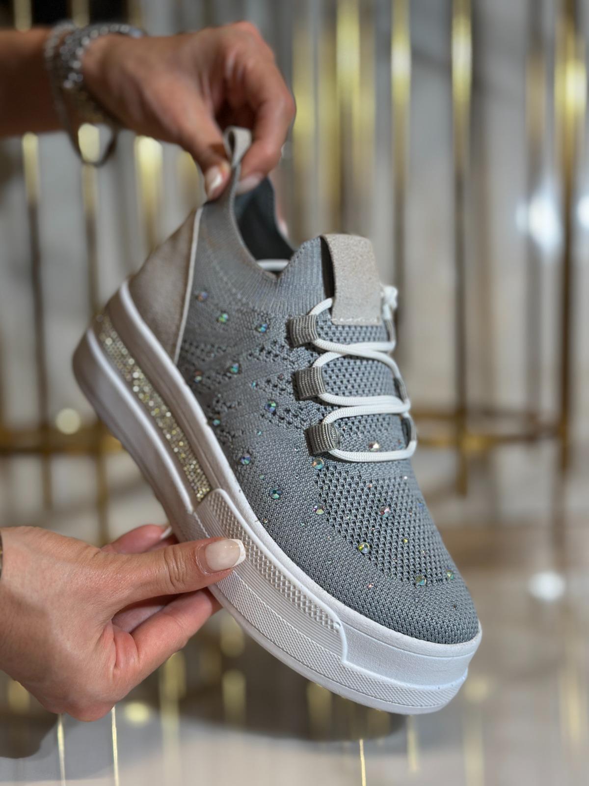 Napol Kristal Taşlı Gizli Topuk Spor Ayakkabı Gri - WOMAN SHOES