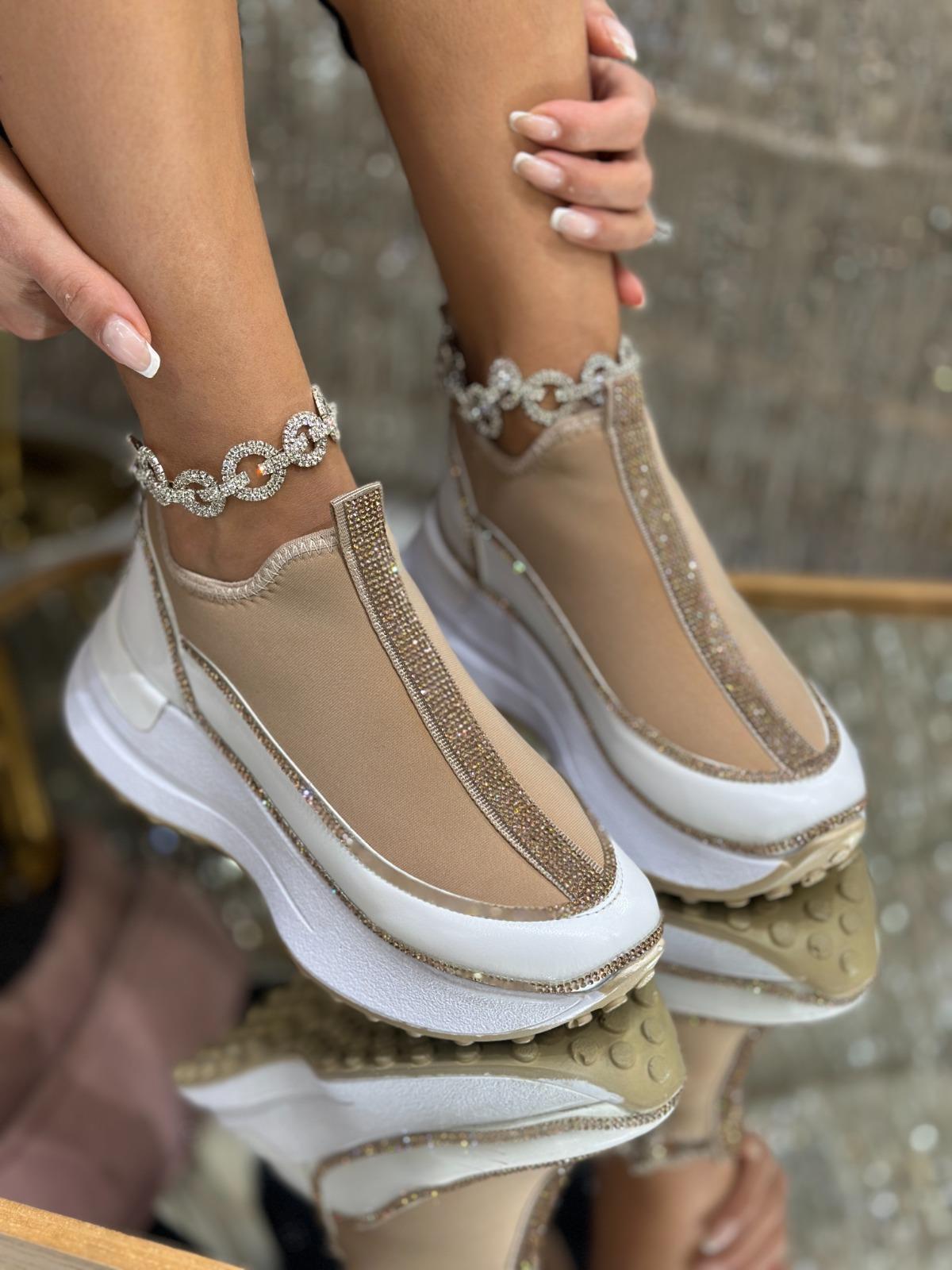 Sagapo Kristal Taşlı Özel Tasarım Spor Ayakkabı Kahverengi - WOMAN SHOES