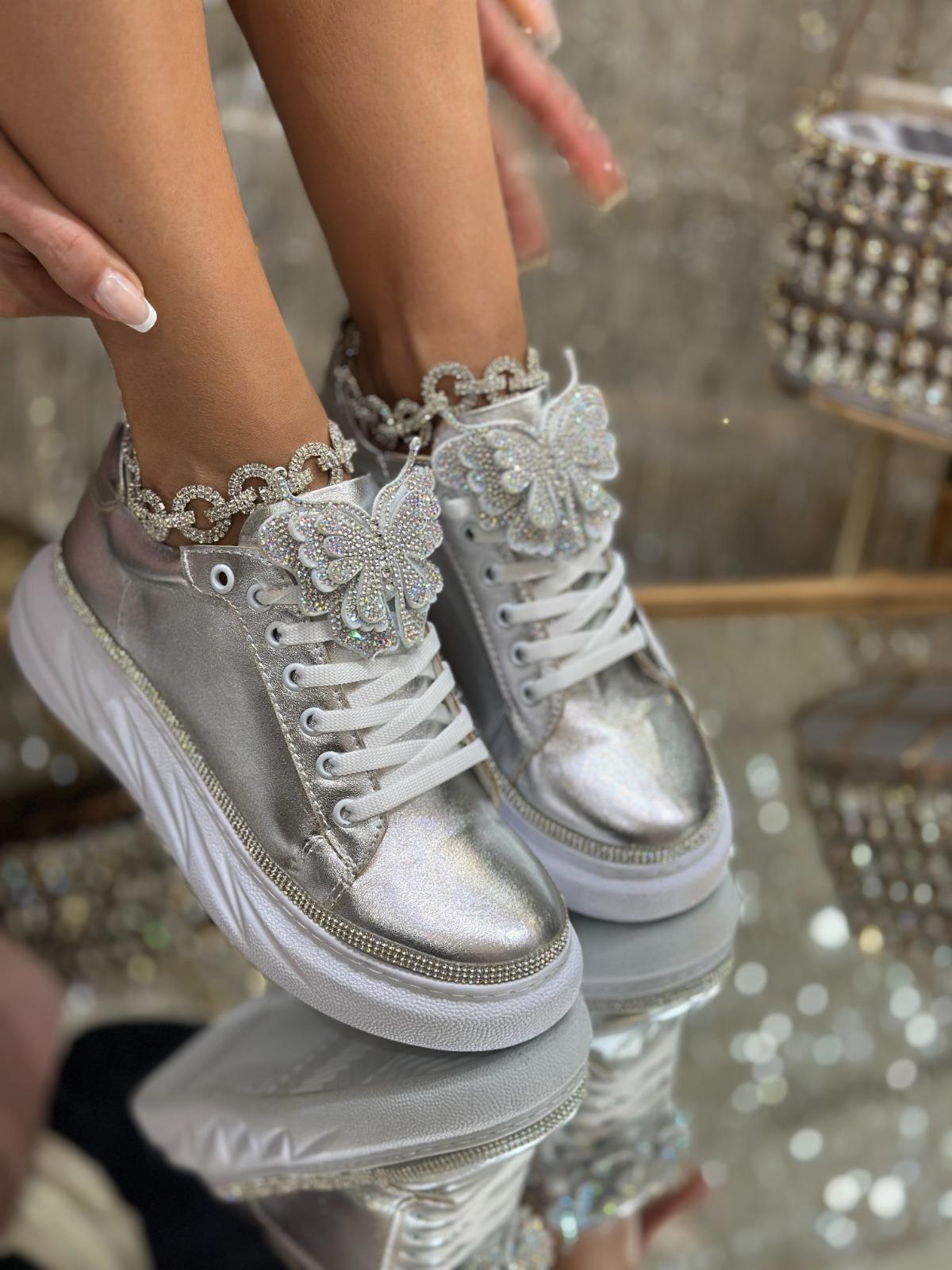 Joly Kristal Taşlı Özel Tasarım Spor Ayakkabı Gümüş
