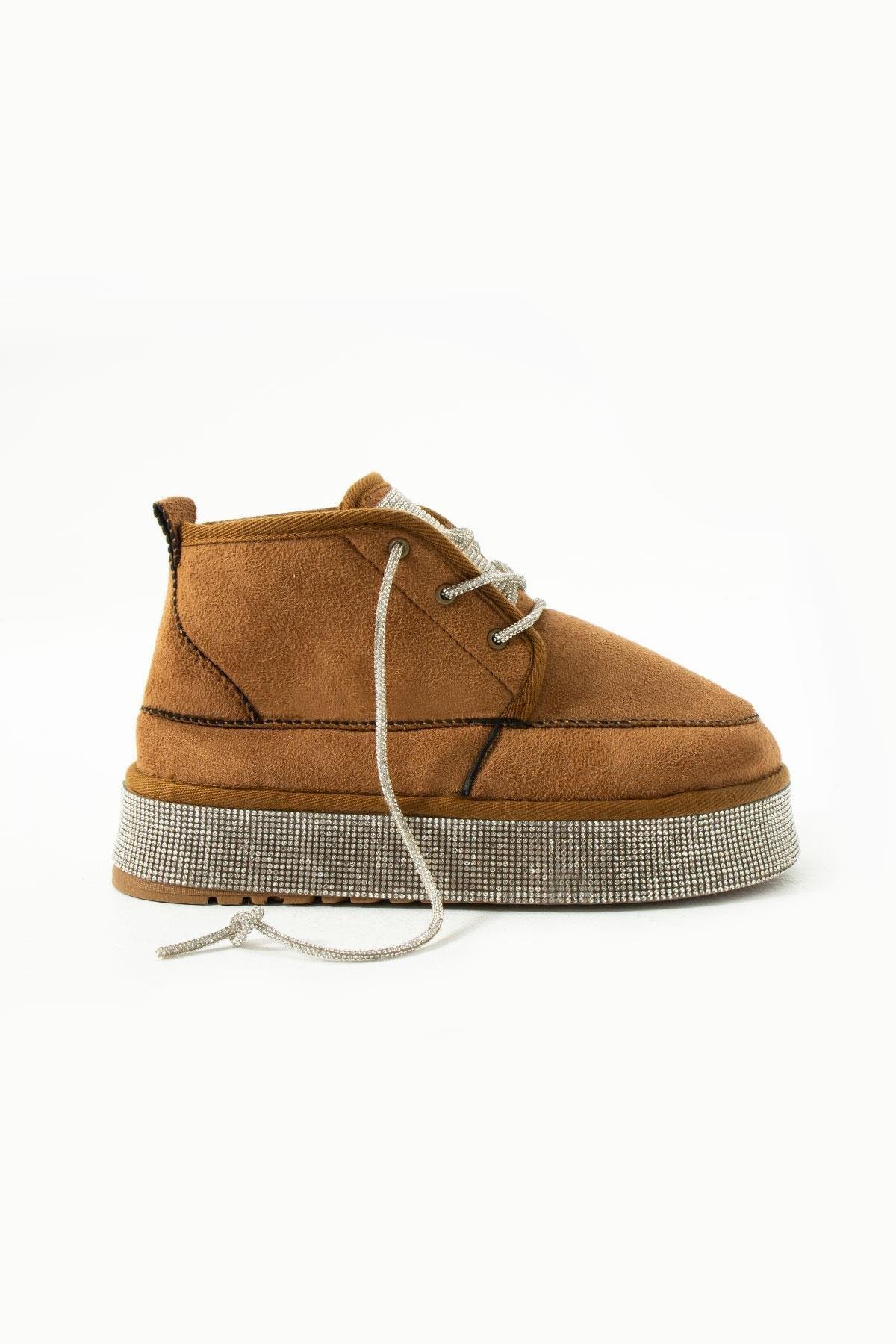 Kamba Kristal Taşlı Bot Kahverengi - BOT