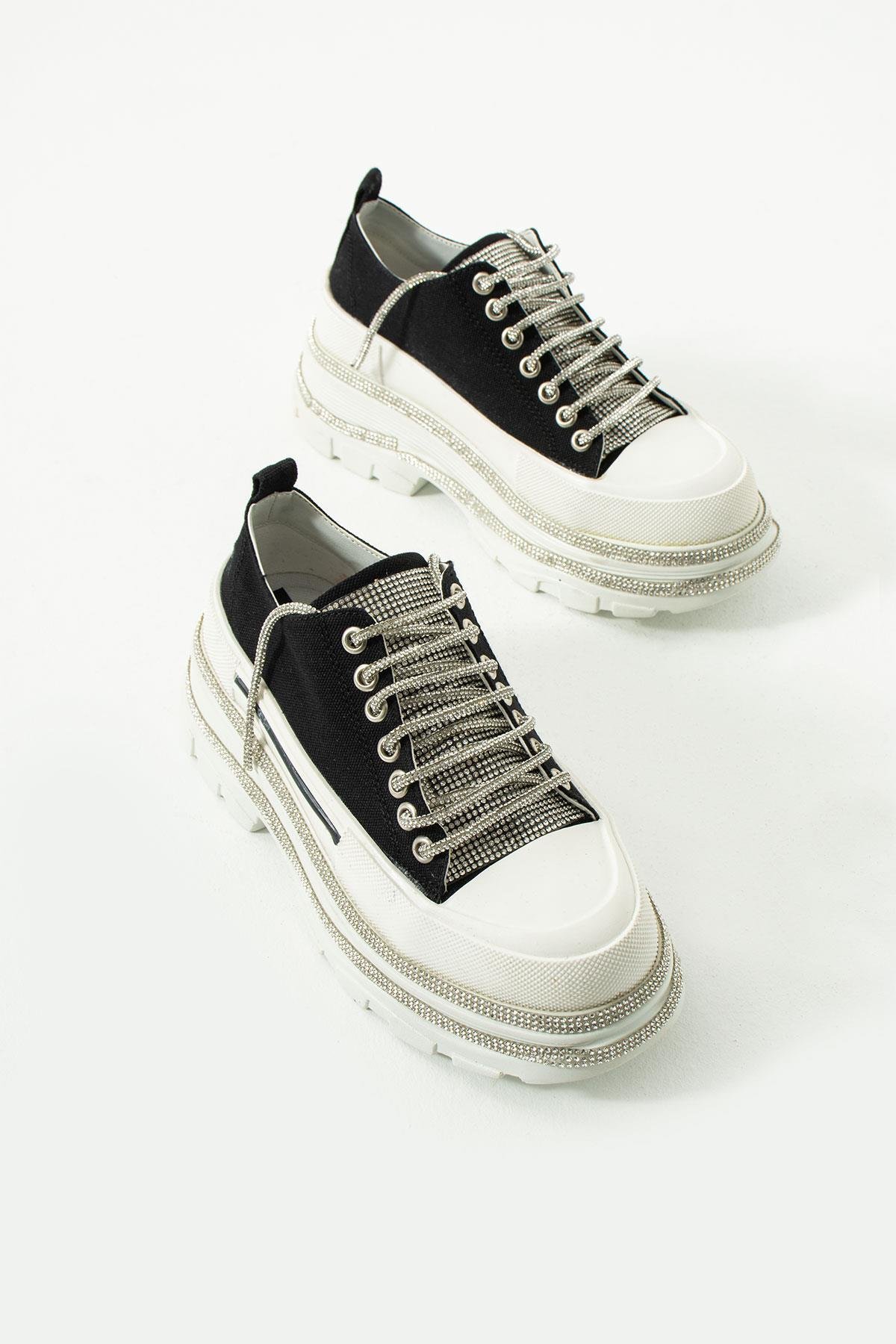 Misty Kristal Taşlı Spor Ayakkabı Siyah - KADIN AYAKKABI