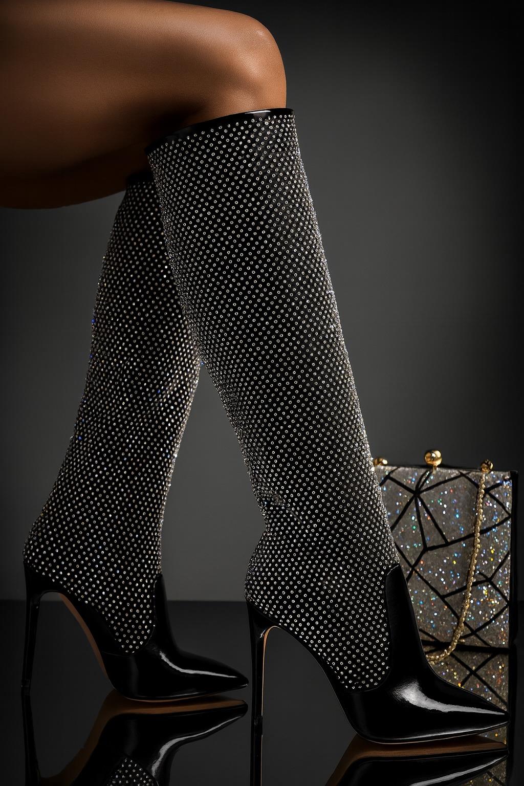 Oloho Kristal Taşlı Rugan Çizme Siyah