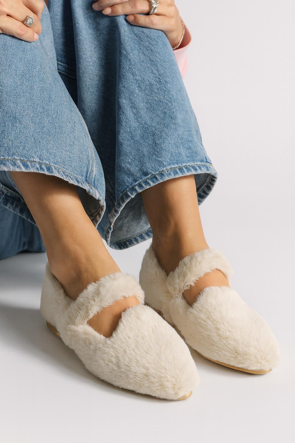Plush Kürklü Babet Bej - Kışlık Terlik