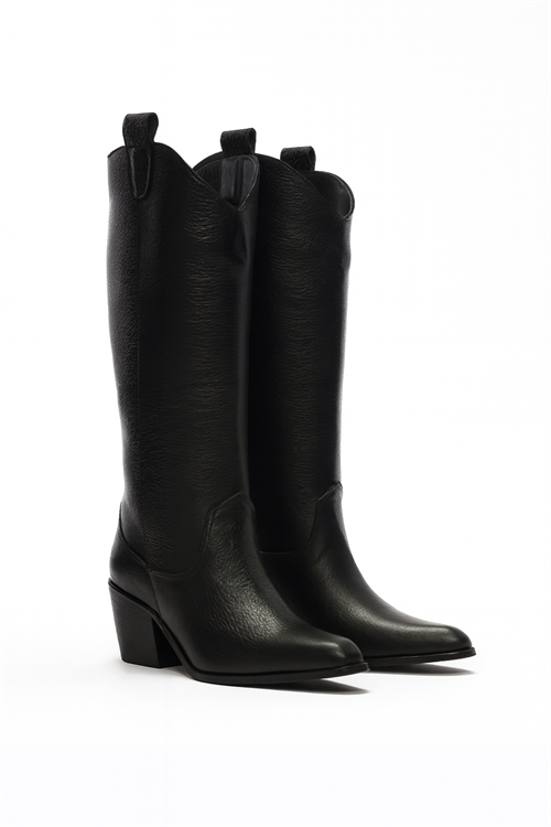 Ryan Hakiki Deri Kovboy Çizme Siyah