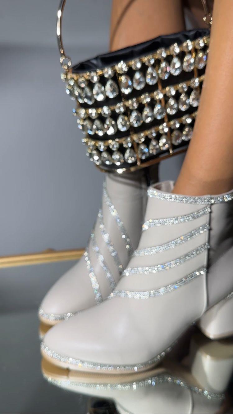 Suem Kristal Taşlı Özel Tasarım Bot Krem