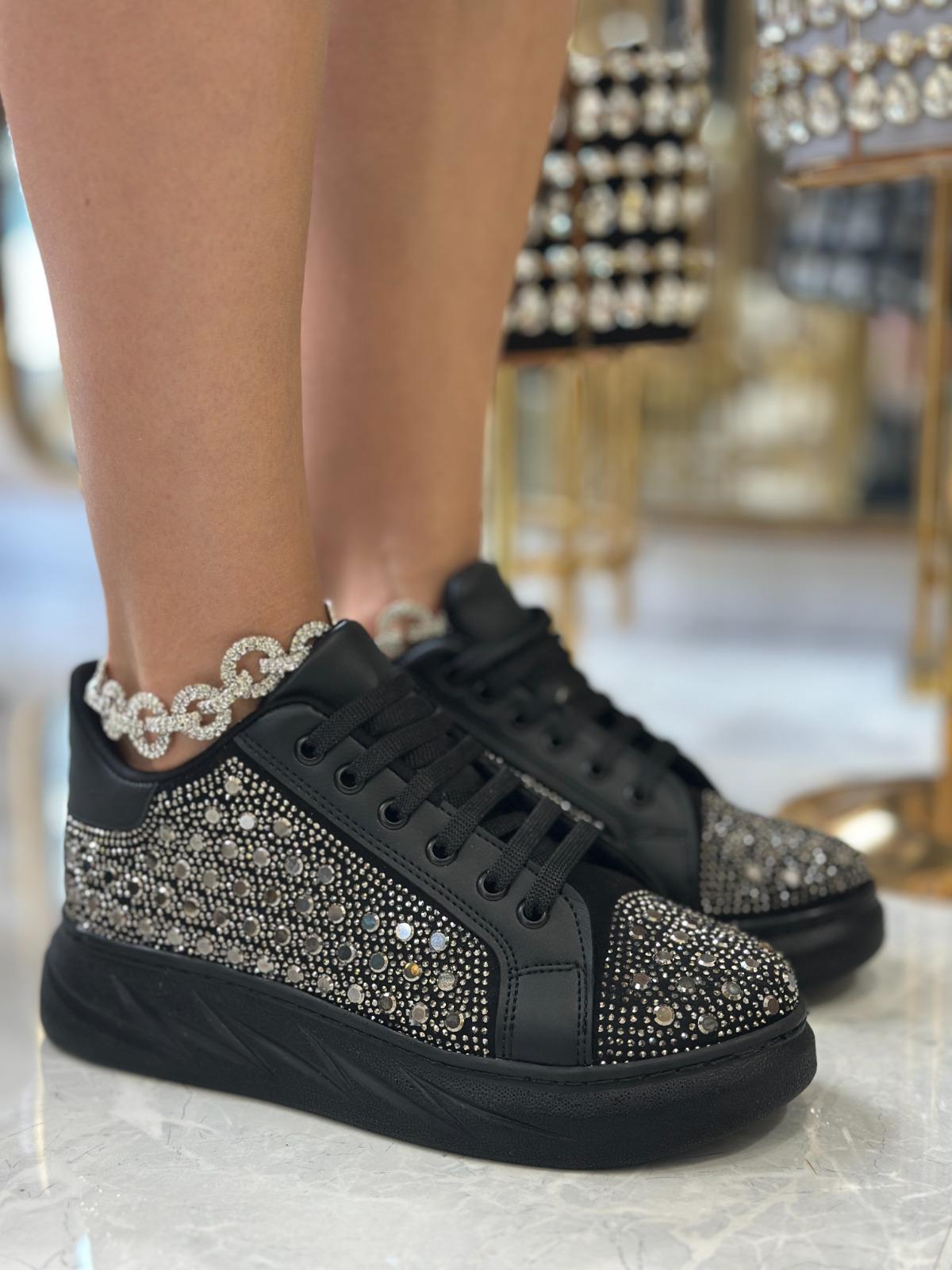 Uriny Kristal Taşlı Özel Tasarım Spor Ayakkabı Siyah