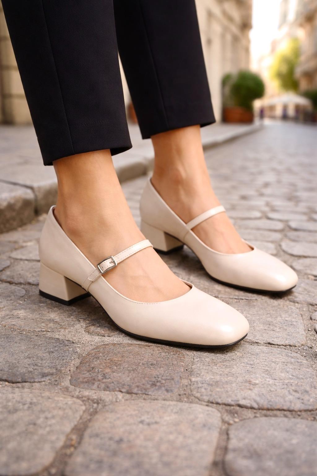 Zelda Topuklu Babet Krem