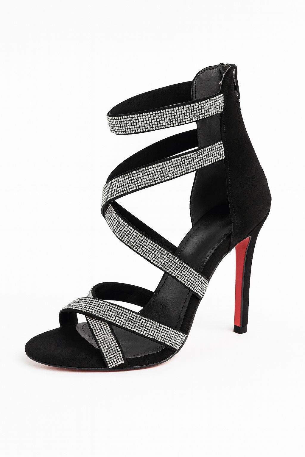 Zetta Kristal Taşlı İnce Topuklu Ayakkabı Siyah -